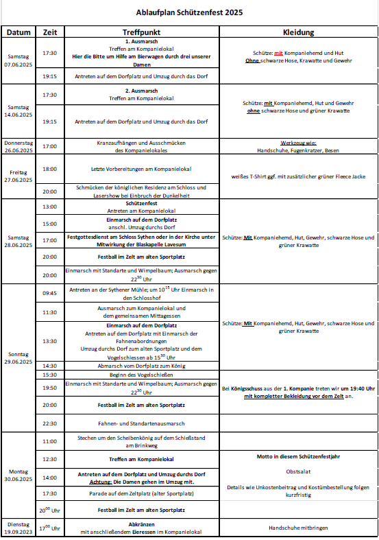 Schützenfest 2025 Lieber Schützenbruder,